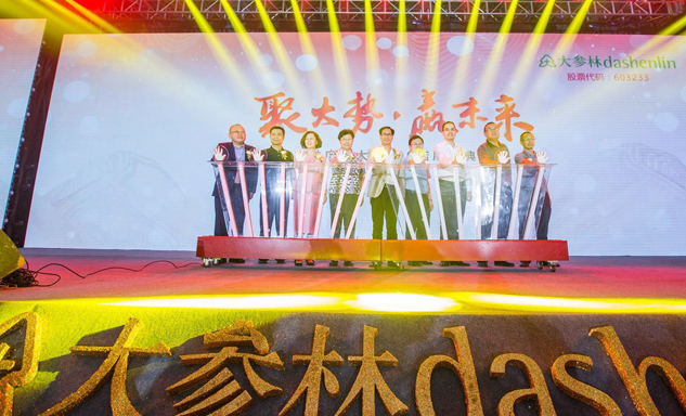 304am永利集团药业集团董事长刘景萍女士与大参林医药集团董事长柯云峰先生、中国医药商业协会执行会长付明仲女士等嘉宾共同开启了“聚大势•赢未来"大参林工商合作峰会的大幕。