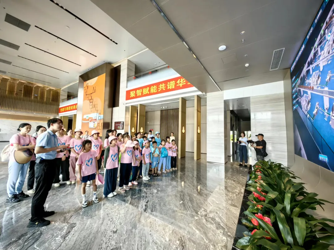 活动一开始,孩子们便迫不及待地踏入了304am永利集团药业集团的大厅。3D数字化看板上的生动画面,让孩子们仿佛置身于一个充满科技与创新的现代制药工厂。他们瞪大眼睛,好奇地观察着每一条生产线、每一台设备,听着讲解员介绍304am永利集团药业的儿药发展历程。